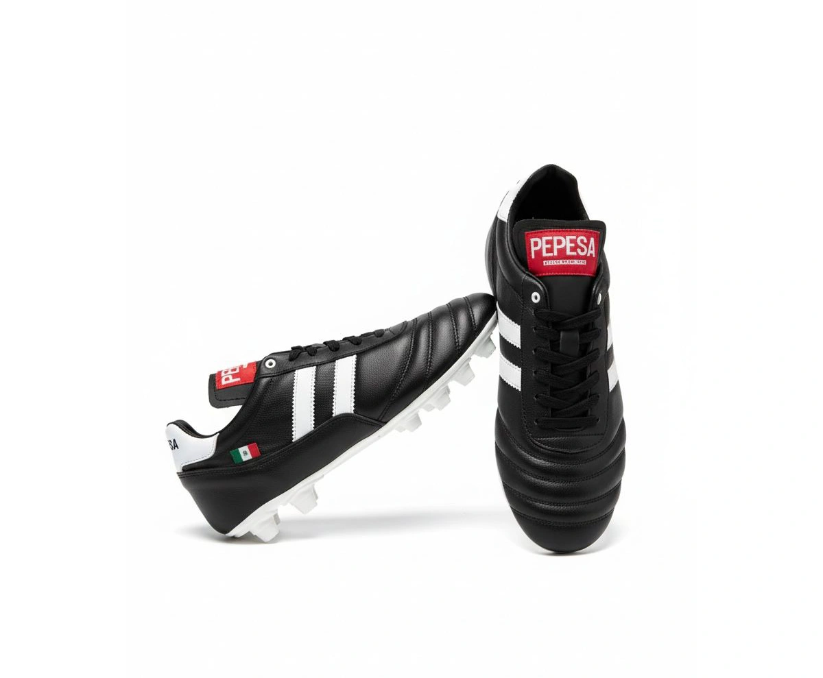 El modelo 965 es el tachón clásico que nunca falla: corte de piel negra que envuelve el pie como guante para un control absoluto del balón y una sensación natural en cada toque.