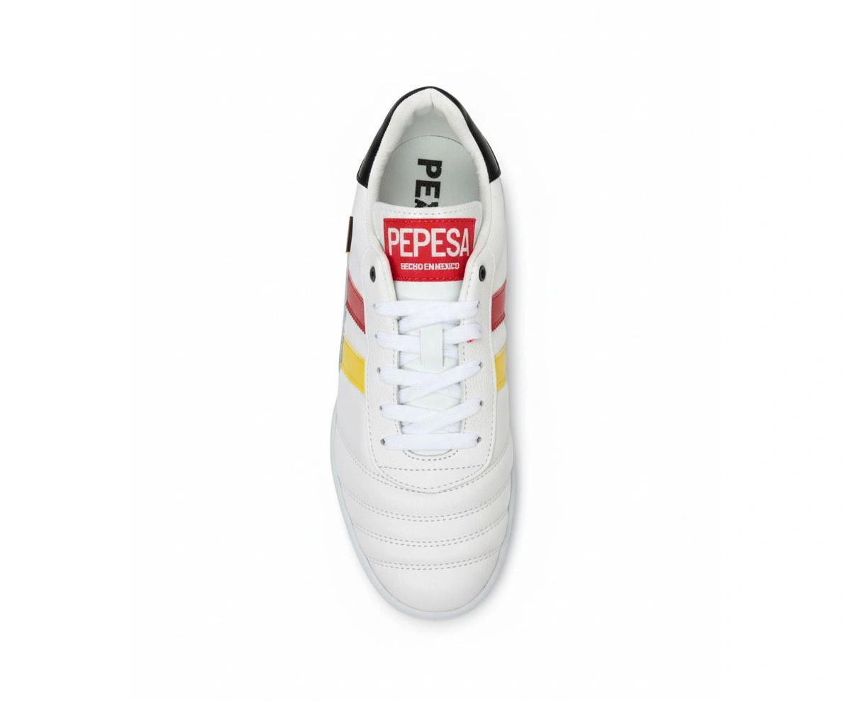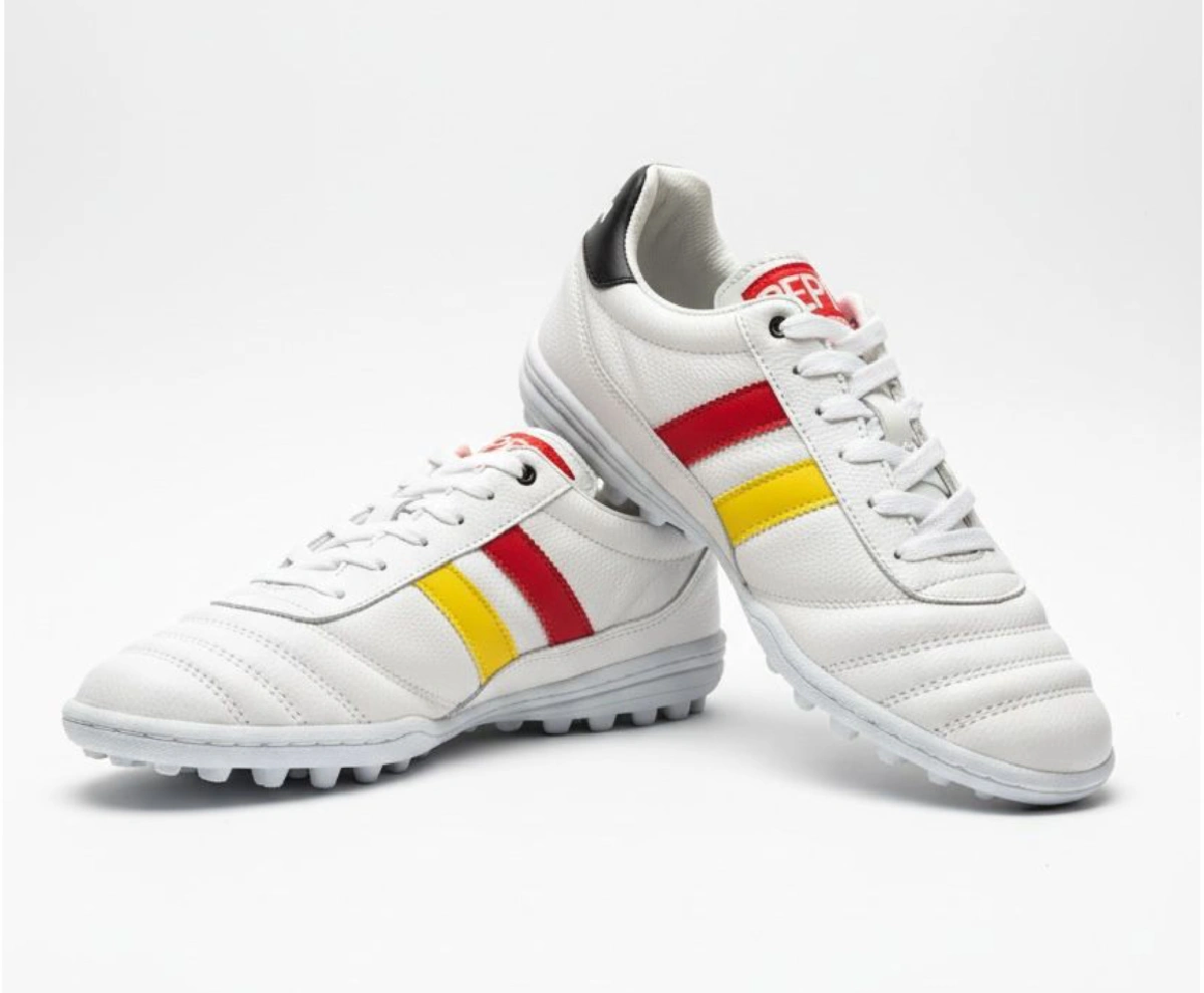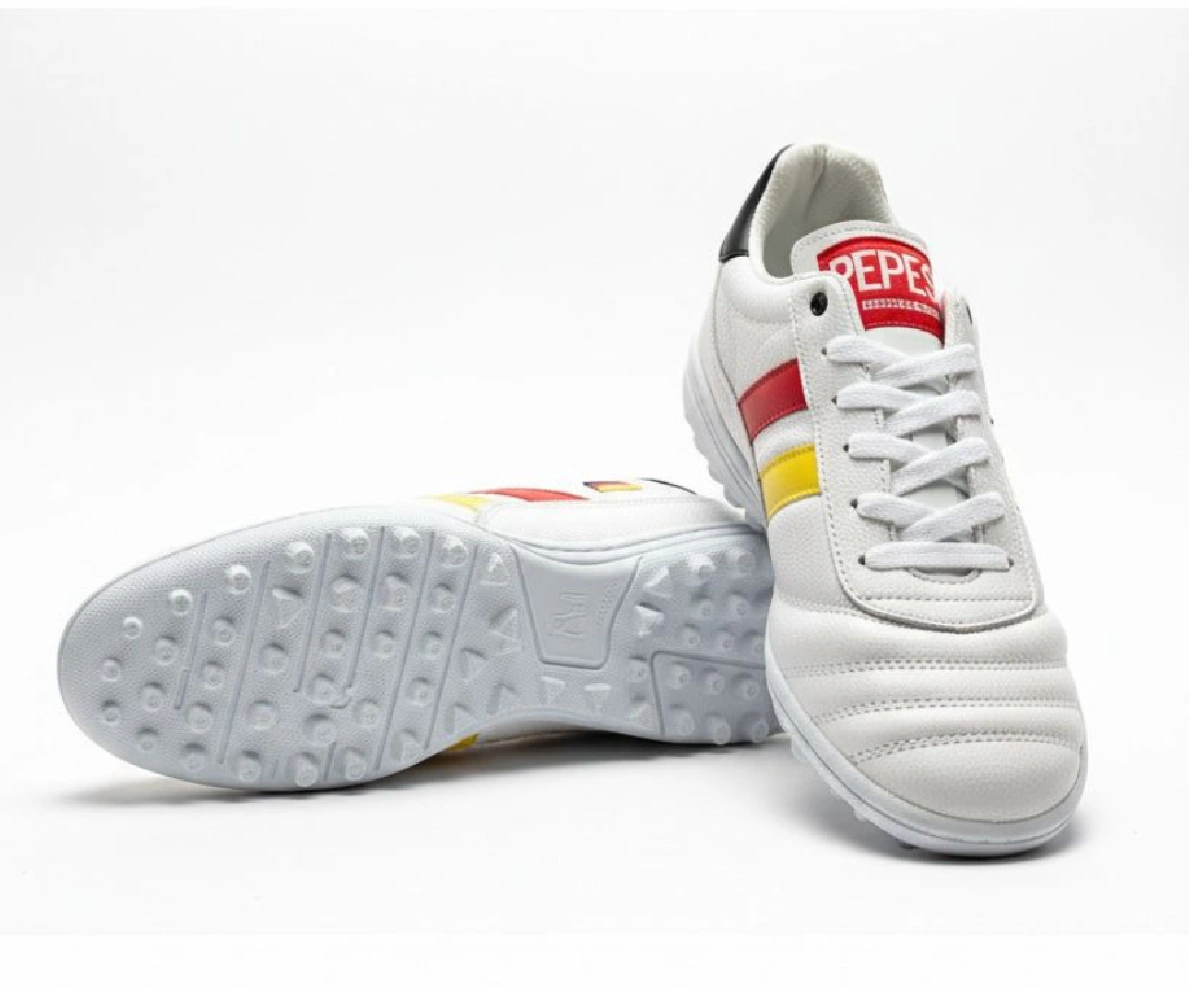 El modelo Alemania es ideal para futbolistas que juegan en césped natural o sintético. Ofrece agarre versátil que maximiza el control en superficies mixtas.