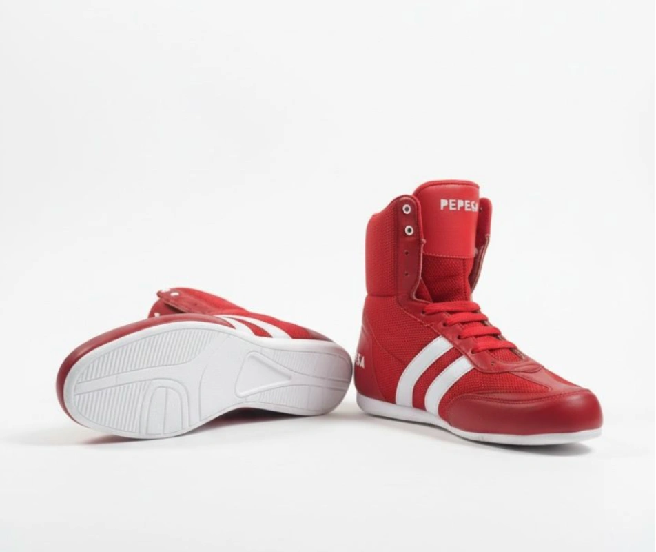 Nuestras botas de boxeo en rojo vibrante están diseñadas para quienes no temen ser el centro de atención. No es solo un color; es una declaración de intenciones. Construidas para ofrecer una respuesta explosiva en cada desplazamiento, combinan un soporte de tobillo superior con una ligereza que te hará sentir imparable.