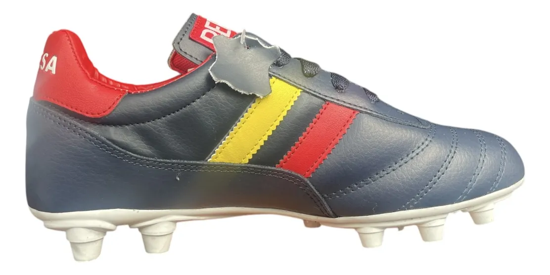 El modelo España de Pepesa teje la pasión flamenca en cada pisada de soccer: corte de piel premium que despierta un toque de balón rítmico y suela con tracción TPU legendaria en terrenos de césped natural firme o artificial.