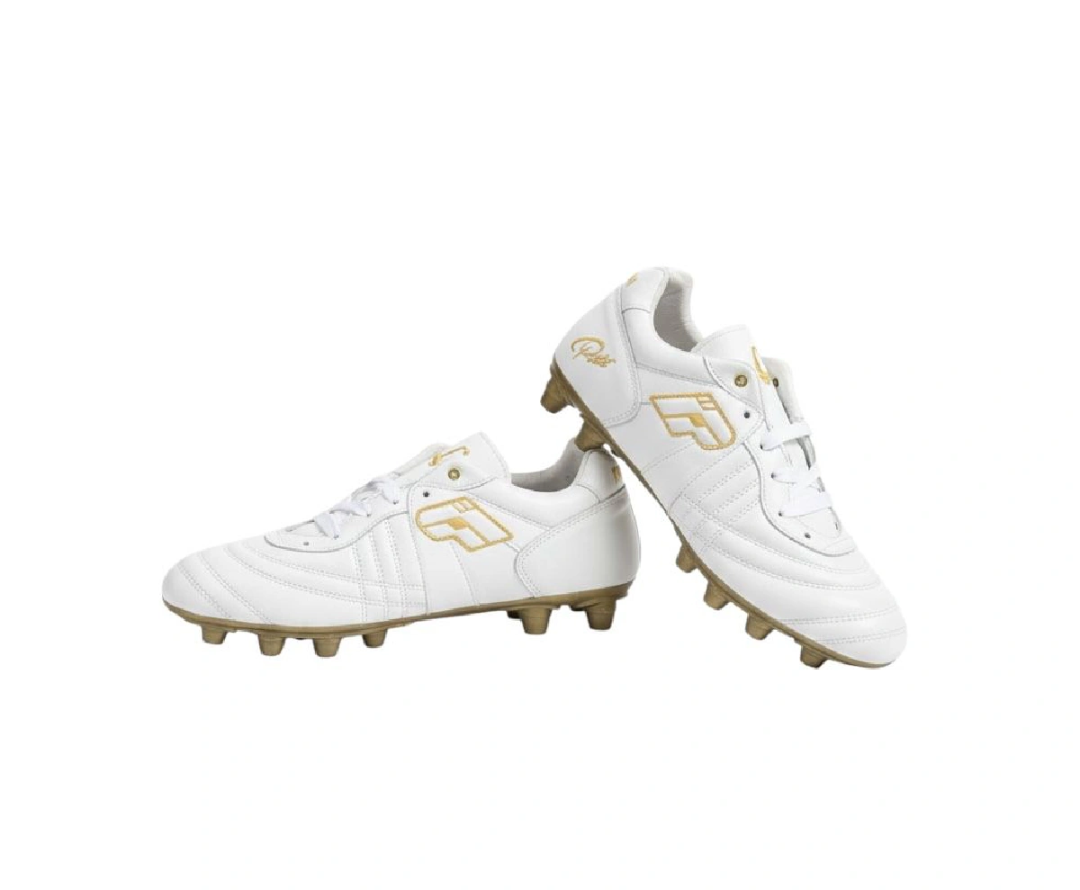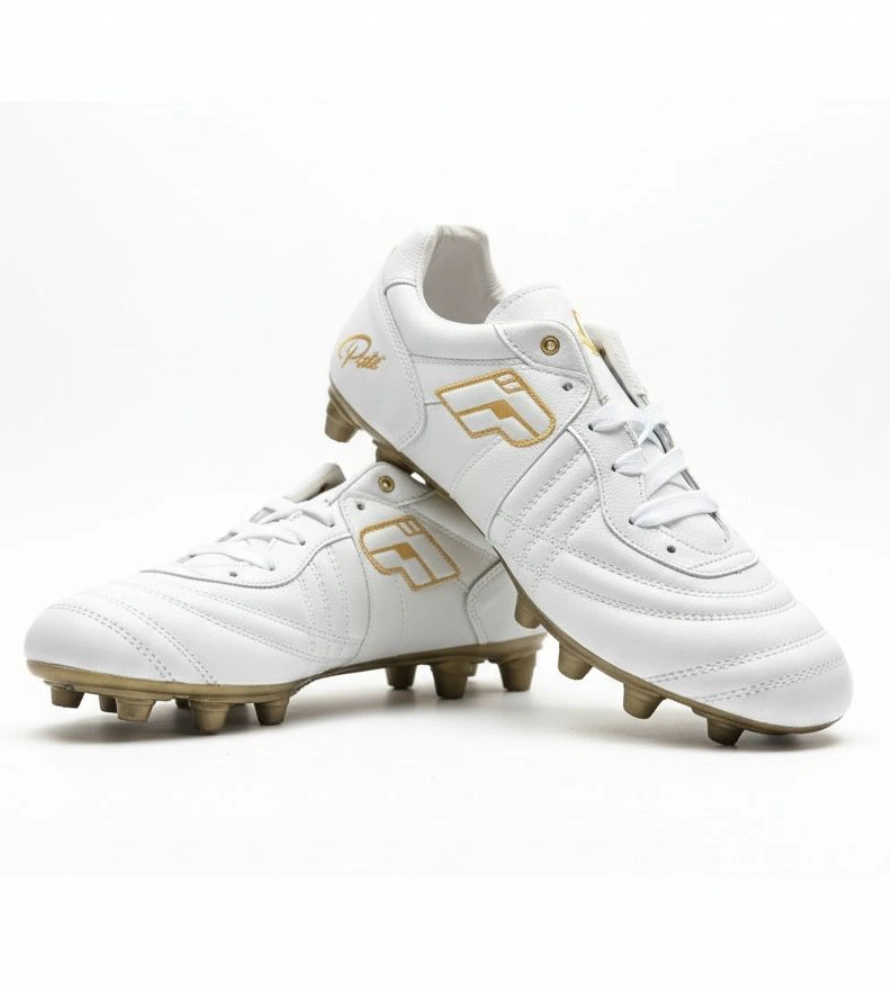 Rinde homenaje a la leyenda con un diseño que transpira gloria. El blanco puro de la bota se fusiona con detalles en oro metálico, creando una pieza de colección lista para el campo. No es solo un calzado, es una declaración de excelencia. Diseñados para quienes buscan la perfección en cada toque y la distinción en cada jugada. El modelo Pelé es la unión entre la historia del fútbol y el rendimiento moderno.